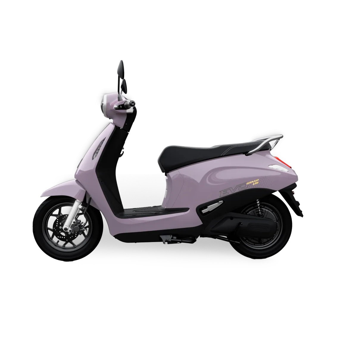 Evo Grand Lite sở hữu phong cách thiết kế bo tròn liền mạch từ thân xe đến đuôi, mang lại vẻ ngoài mềm mại, thanh lịch nhưng vẫn đậm chất hiện đại. Xe có kích thước tổng thể 1.856 x 683 x 1.133 mm và chiều cao yên chỉ 770 mm – rất phù hợp với vóc dáng người Việt, đặc biệt là nữ giới hoặc người có thể trạng nhỏ.